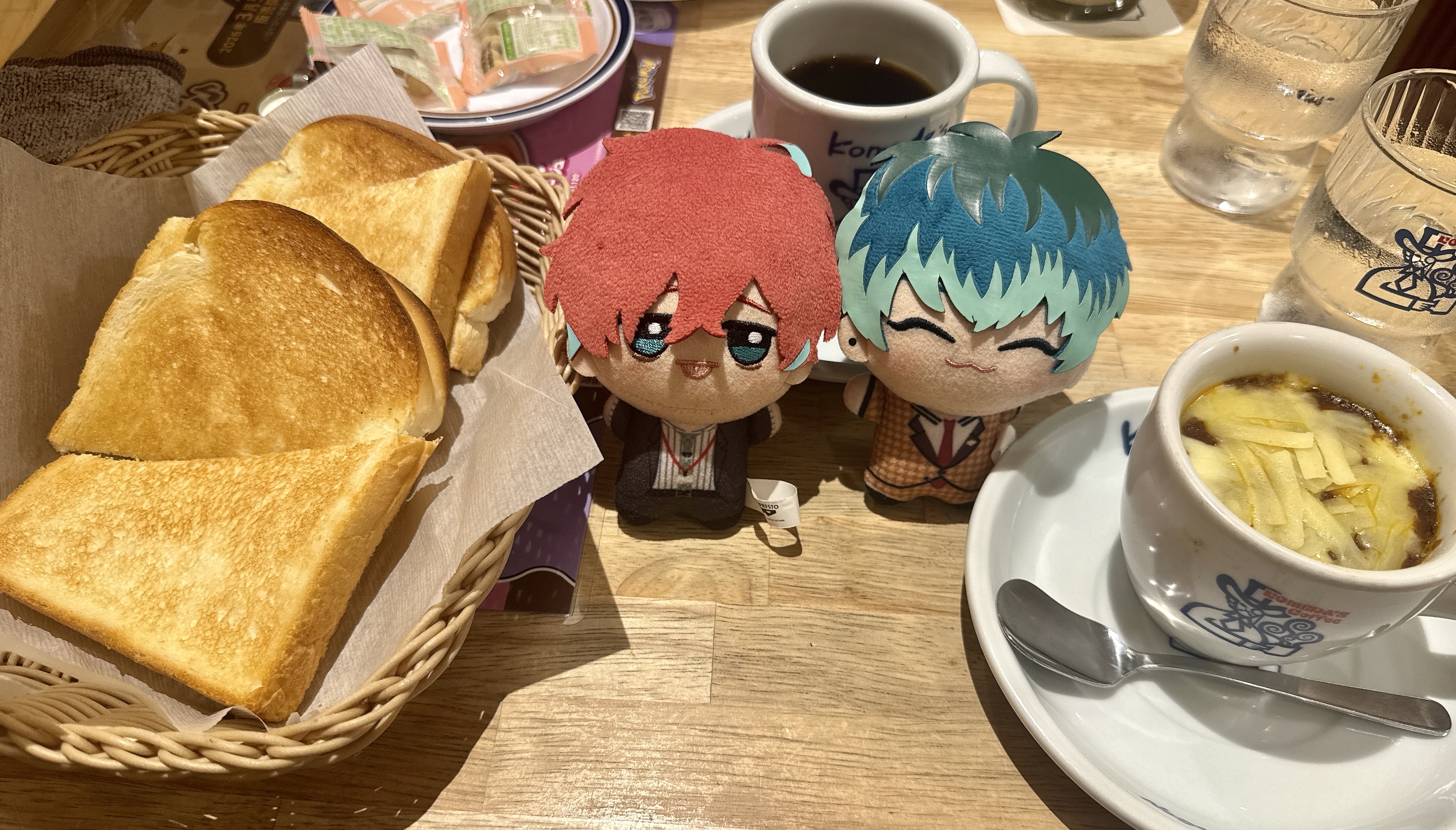 ネットで拝見して気になっていた、チーズカレートーストを頼みました。(ぬいの配置......)
